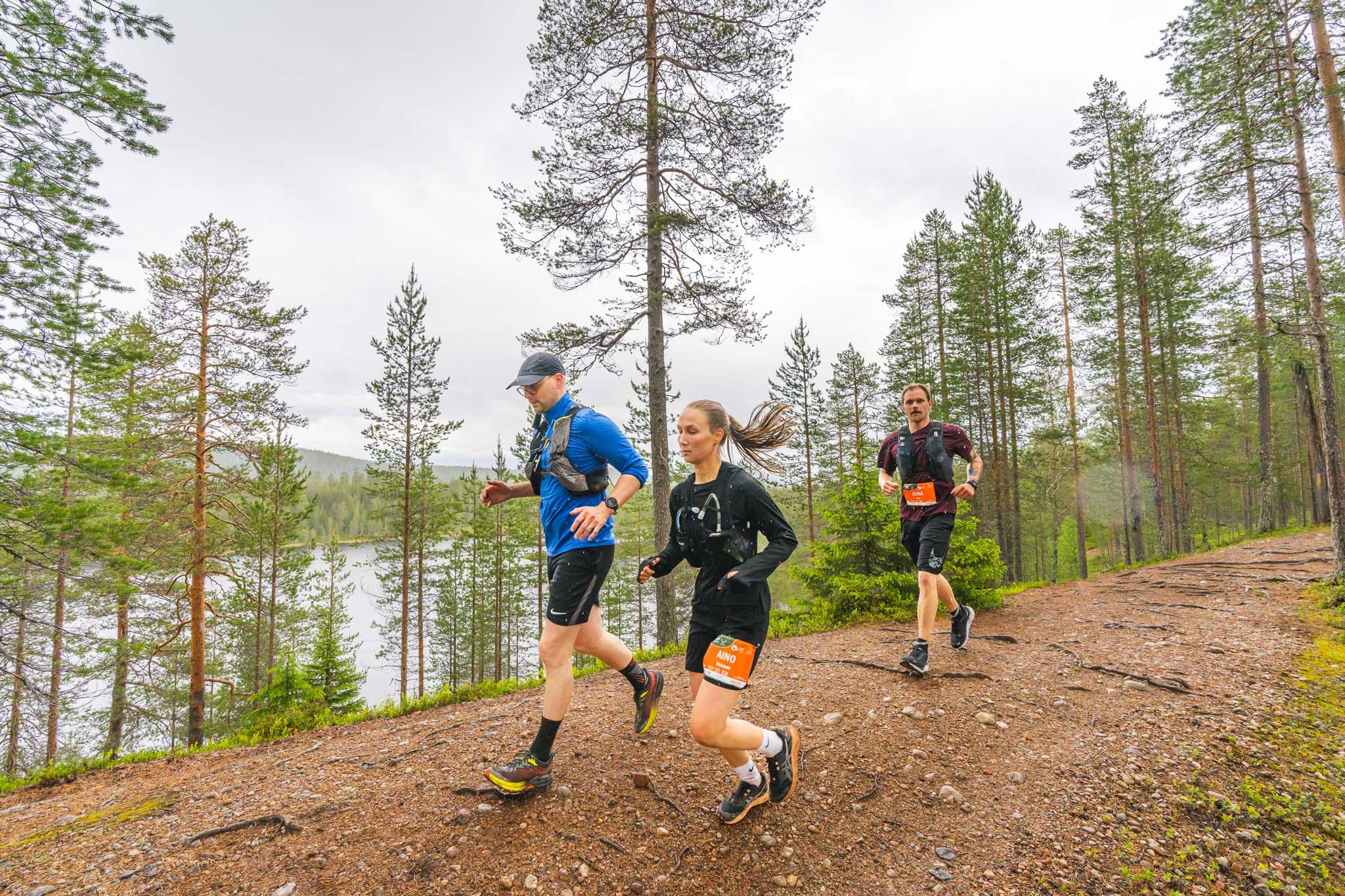 40 km reitti kulkee Syötteen kansallispuiston parhailla poluilla! Nousuja, teknisiä osuuksia ja Iso-Syötteen huiputus ennen vauhdikasta laskua maaliin.